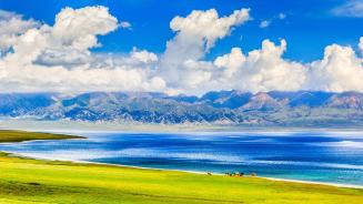 夏季的赛里木湖,博尔塔拉蒙古自治州博乐县, 中国新疆维吾尔自治区