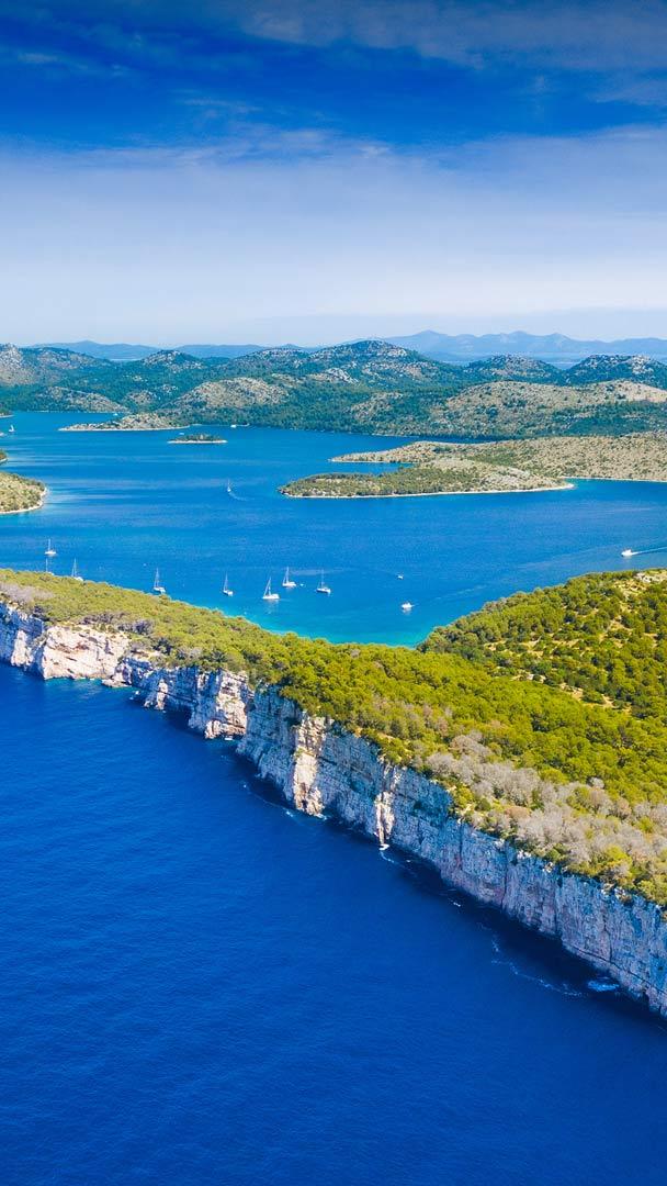 2024-08-13 欢迎来到克罗地亚杜吉奥托克岛南部的天堂之地——特拉斯契卡自然公园。特拉斯契卡湾位于克罗地亚亚得里亚海岸,被13个岛屿和6个小岛环绕。今天这张照片展示了海湾悬崖,这里形成了一个绵延6英里的迷人海湾,内有壮观悬崖、小岛和宁静水湾。当地人称这些悬崖为“stene”,海拔高达528英尺。其他特色景观还包括亚得里亚海最安全、最广阔的天然港口(拥有25个僻静的海滩),以及以治疗功效闻名的米尔盐湖。因此,当你有兴致游览岛屿时,就来特拉斯契卡吧,在这里,陆地和海洋将无休止地玩着捉迷藏的游戏。