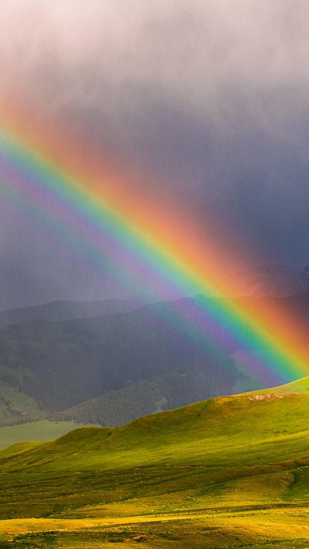 2024-04-03 正如青蛙科米特(《布偶电影》中的主角)曾在歌曲《彩虹般的连接》中所唱的那样:“彩虹是幻象,但只是幻象,彩虹没有什么可以隐藏的……”每年4月3日是美国的 “全国寻找彩虹日”,这一天旨在庆祝这一多彩的自然现象,它让世界各地的人们都欣喜不已。当阳光通过大气中的雨滴,光线被反射和散射时,彩虹就会出现。在“寻找彩虹日”这天,人们会参加相关的活动,例如在雨后寻找彩虹或者是创作以彩虹为主题的艺术。在今天的图片中,我们看到一道彩虹挂在吉尔吉斯斯坦雄伟的Kakshaal Too 山脉上,崎岖的山峰和纯净原始的山谷构成了一副绝美的背景图,与稍纵即逝的彩虹美景相得益彰。