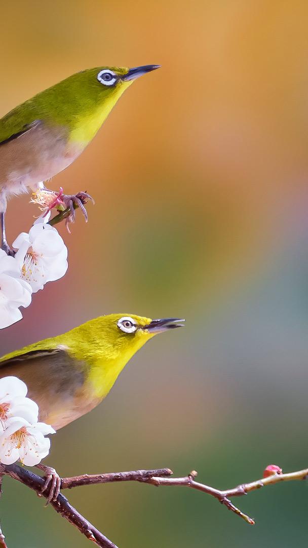 2024-03-24 跟这些在韩国赏樱花的灰胸绣眼鸟打个招呼吧!它们身披黄羽,身形滚圆,个子小巧,喜欢成群出没。虽然这种雀形目鸟类原产于非洲、澳大拉西亚和亚洲,但由于引进的关系,在法属波利尼西亚和夏威夷等地也能看到它们的身影。灰胸绣眼鸟又名银绣眼鸟,有各种颜色和图案,但它们都有标志性的眼圈。它们嗜甜如命,爱吃花蜜,但也不挑食,水果、昆虫和浆果它们也喜欢吃。在阳春三月,让我们赞美这些为春天增添一抹奇妙色彩的小精灵吧!