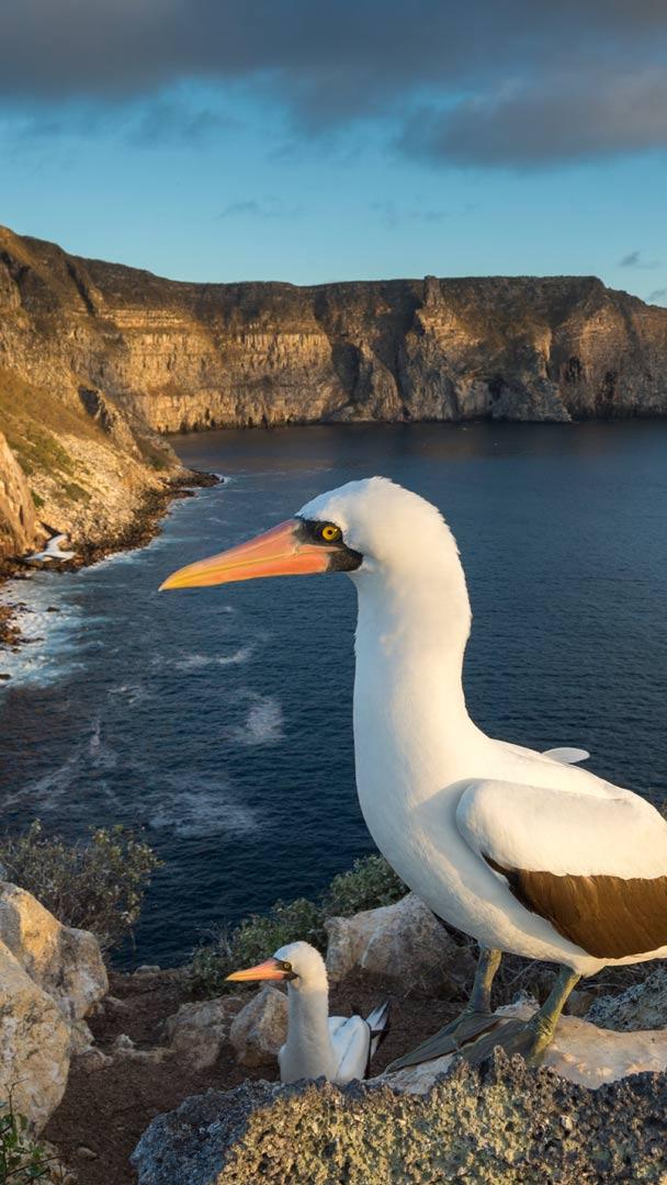 2024-08-21 东太平洋的加拉帕戈斯群岛是野生动物的天堂,它们的栖息地范围从干旱地区到热带雨林不等。由于这些岛屿的地理位置相对孤立,岛上许多生物都是独一无二的,纳斯卡鲣鸟便是其中之一。今天的照片展示的就是在沃尔夫岛上生活的纳斯卡鲣鸟。这些引人注目的鸟儿走路时举止笨拙搞笑,它们的英文名“Nazca booby”也十分有趣,不过“booby”一词其实源自西班牙语“bobo”,意思是小丑。<br>加拉帕戈斯群岛,包括偏远而崎岖的沃尔夫岛前哨,为这些海鸟们提供了理想的栖息地。岛上陡峭的悬崖和岩石海岸是完美的筑巢点,周围水域鱼类丰富,为海鸟们提供了充足的食物。如果游客去到加拉帕戈斯群岛,既可以在自然栖息地观赏鸟儿,还有机会探索地球上生物多样性最丰富的地区之一。