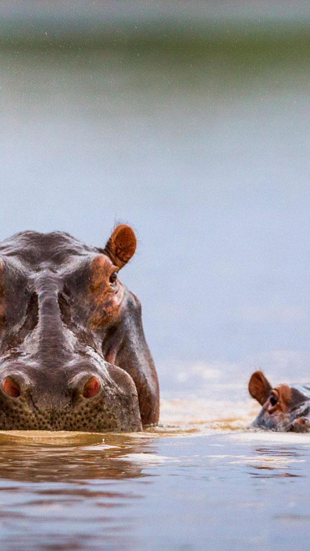 2024-02-15 今天,所有的目光都聚焦在河马身上!河马是仅次于大象和白犀牛的第三大陆栖哺乳动物,值得我们关注,尤其是在世界河马日这一天。这些半水生动物原产于撒哈拉以南的非洲地区,已被国际自然保护联盟列为易危物种。<br>这张照片中偷窥的河马宝宝仍然在妈妈的“监视”下,河马妈妈的贴身保护将持续到大约八个月的哺乳期结束。这些胖乎乎的哺乳动物体重达3300磅,看起来很可爱,但强壮的下颚、硕大的牙齿和攻击性的行为使它们成为世界上最危险的野生动物之一。因此,请在安全距离外欣赏它们——尽管它们的腿很短,但它们也跑得很快!