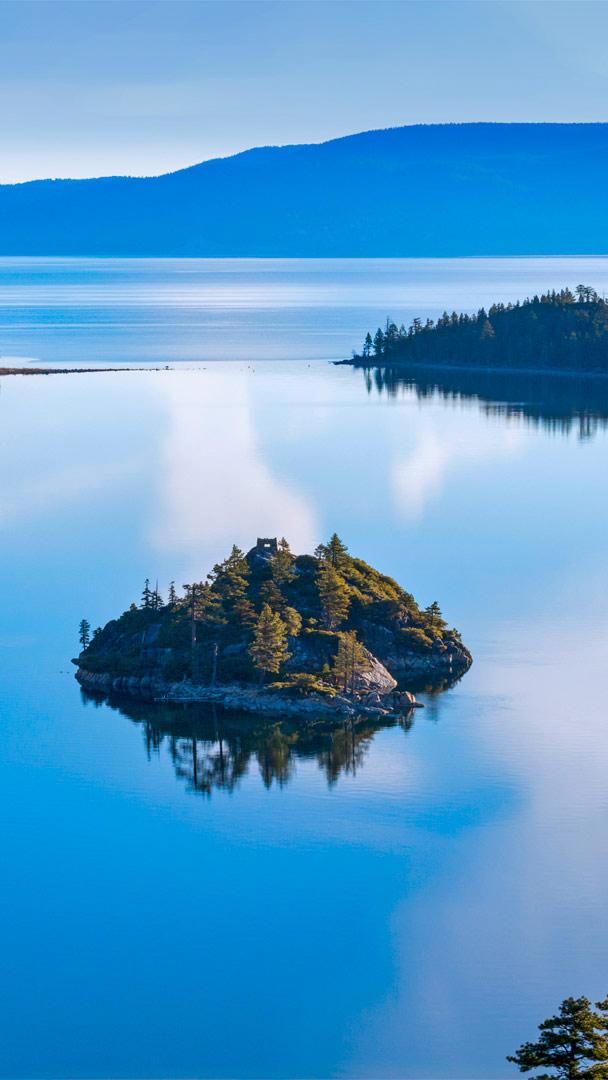 2022-07-05 在一个巨大的高山湖泊里有一个花岗岩小岛,叫芬尼特岛,它是太浩湖里唯一的岛屿。这个巨大的湖泊位于内华达山脉,海拔6225英尺,横跨在加州西部和内华达州东部的州际线上,几乎完美对称。芬尼特岛位于太浩湖西南海岸加利福尼亚一侧的翡翠湾。在这张图片的顶部可以看到一个狭窄的入口,它连接了翡翠湾与湖的其他部分,其自然美景一年四季都吸引着游客。<br>太浩湖被誉为是划船和滑雪爱好者的圣地。其寒冷的高山湖水以清澈著称。尽管寒冷的冬季气温为周围的滑雪胜地提供了充足的积雪,但湖水从不结冰。作为北美最大的高山湖泊,太浩湖的水量甚至可以与北美五大湖相媲美,因为它太深了。<br>冰河时代的冰川是大自然的雕塑家,在万亿年前就已经雕刻出了翡翠湾,留下了小小的芬尼特岛。在上个世纪,这座小岛曾有过好几个名字,而芬尼特岛这个名字最终被保留了下来。登上“湖拔”150英尺的山顶,你会看到一座名为“茶屋”的古老石砌建筑的废墟。这座茶屋以及翡翠湾一处名为维京斯霍尔姆的城堡(这座城堡现归国家所有,是翡翠湾国家公园的一大特色),由这座岛的前主人于20世纪20年代所建造。茶屋过去正是用来举办茶话会的,周围的环境几乎不可能在任何其他家庭中复制。虽然岛上不再供应茶,但高山美景仍在那里等着你。