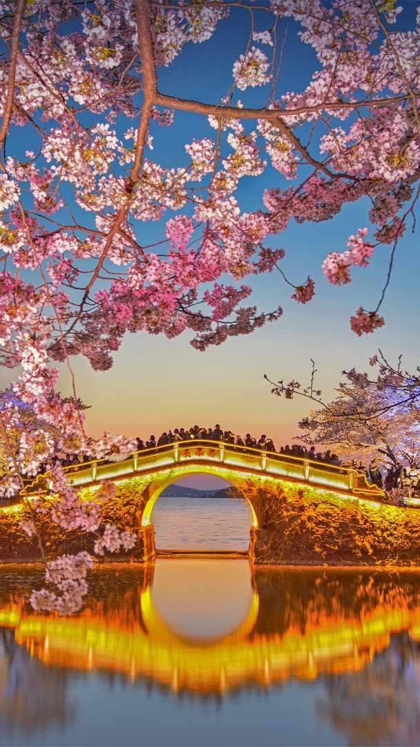 2022-04-03 太湖宁静的外表也许会使人忽略它所在的城市无锡,是江苏省南部一个拥有750万人口的大都市,东边不远处就是上海这个特大城市了。不过在国内第三大淡水湖这里,人们的生活远离了城市的喧嚣。20多英里(约40公里)宽的太湖为人们提供了远离城市的生活环境,也吸引游客来参观风景如画的湖岸。<br>游览太湖最热门的时间莫过于在赶在鼋头渚上3万棵樱花树盛开的时候。鼋头渚是游览湖泊的完美起点,游客可以在这里漫步风景优美的小径、花园、桥梁和观景台。<br>樱花的花期大约为10天,通常在3月下旬或是4月初。如果这个场景让您想起了日本,那也没错,因为赏樱花是日本一项由来已久的传统活动。事实上,太湖边的樱花树还是来自日本友人送来的礼物。