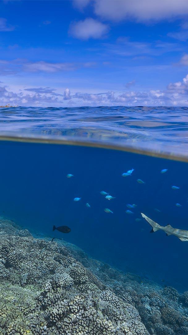 大溪地海岸附近的乌翅真鲨,法属波利尼西亚