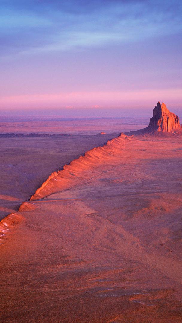 2017-03-02 船岩形成自2700万年前冷却的岩浆,目前还在不断被侵蚀中。船岩得名自19世纪中期,因为岩石的外形与19世纪的帆船相似。这座岩石被纳瓦霍人视为神圣象征,承载了他们许多珍爱的起源神话与传奇。出于对纳瓦霍人的尊重,从1970年起,攀登船岩的行为已被命令禁止。