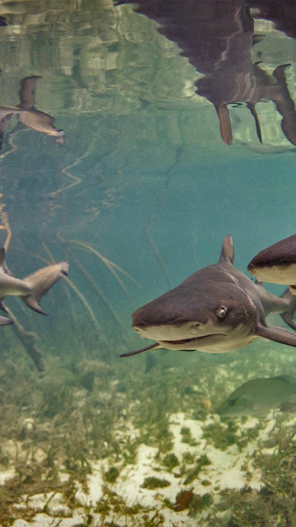 2022-07-14 在鲨鱼保护宣传日这天,让我们站在鲨鱼的立场上去思考问题。鲨鱼名声不太好,它们还是海洋中的顶级掠食者。但是过去半个世纪鲨鱼数量锐减70%以上,人类应该对此负有首要责任。先抛开鲨鱼是危险动物的刻板印象,我们来想想鲨鱼本身,它们是神奇的海洋生物,它们的基因有数亿年的历史。尽管我们并不想面对面撞上鲨鱼,但它们应该得到人类的尊重。为了整个海洋的健康,鲨鱼也应该得到保护。<br>就拿今天图上的这些柠檬鲨宝宝来说吧。它们正在巴哈马的比米尼群岛附近的一些红树林里游玩。因为比米尼鲨鱼研究所进行的研究,柠檬鲨已经是鲨鱼种群中我们最了解的一种鲨鱼了。尽管如此,它们还是更习惯于避开人类。目前,只有10起柠檬鲨咬伤人的报道,而且这些咬伤并不致命。这些鲨鱼宝宝们喜欢彼此挨得很近。和许多其他鲨鱼一样,柠檬鲨喜欢彼此亲密接触。像人类一样,社交互动对它们很重要,可以帮助它们学习、合作和生存。可悲的是,人类为了满足口腹之欲而对柠檬鲨进行过度捕捞,使其成为易危物种。因此,与其害怕鲨鱼,我们不如在今天和以后的日子里打破刻板印象,给鲨鱼们更多的生存空间。