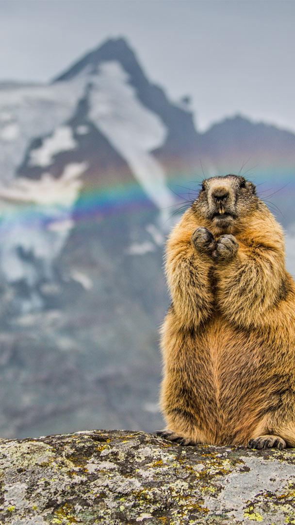 大格洛克纳山山峰前的土拨鼠,奥地利