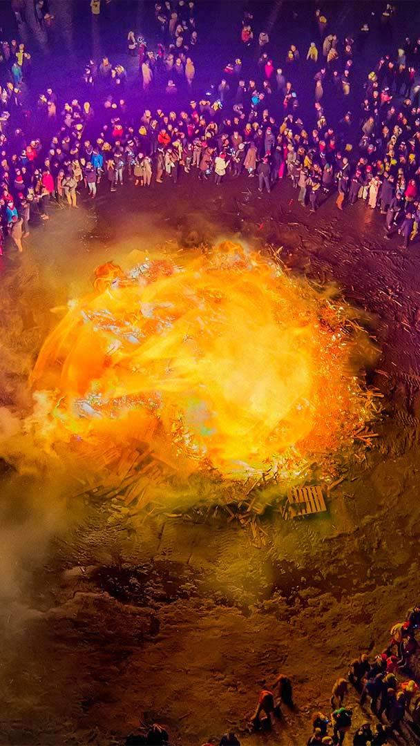 跨年夜的篝火晚会,冰岛雷克雅未克