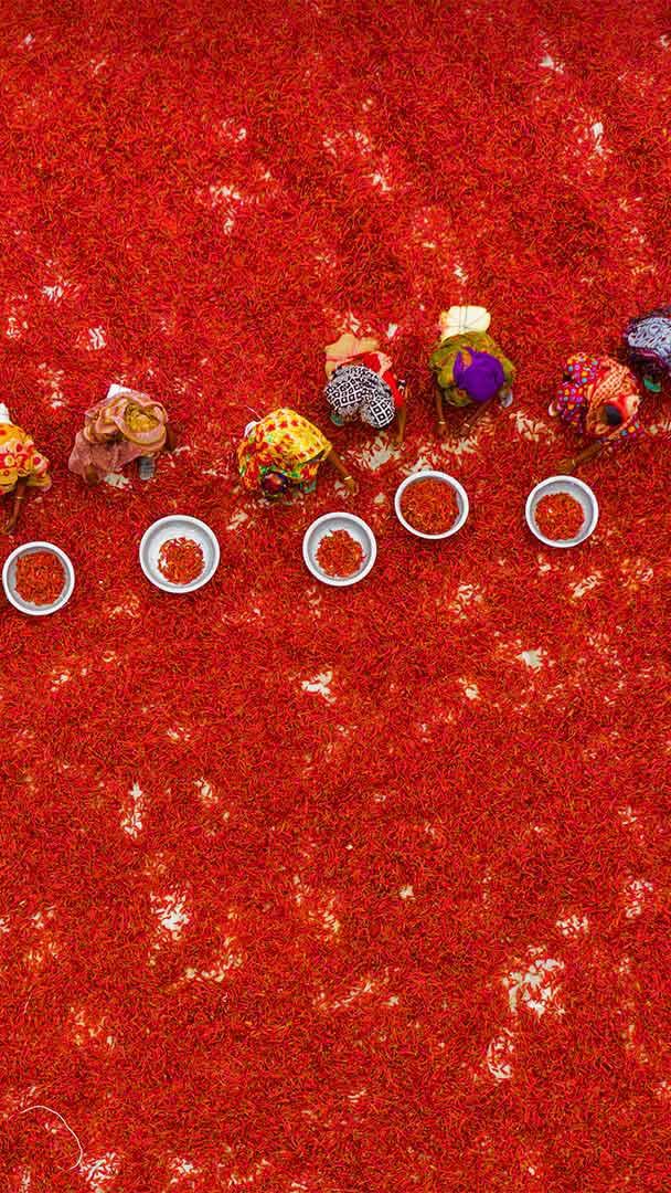 农场上晾晒的红辣椒,孟加拉国博格拉县