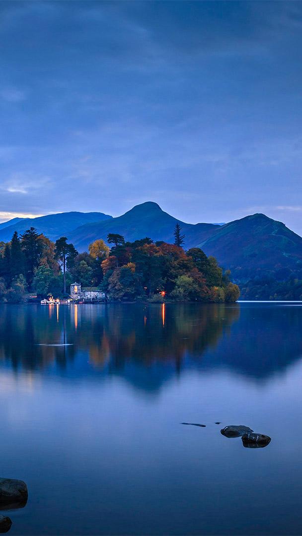 德文特湖上的德文特岛房屋,英国坎布里亚郡湖区国家公园