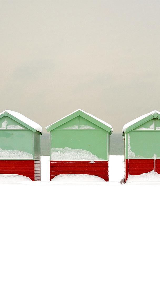 布莱顿-霍夫被雪覆盖的海滩小屋,英国