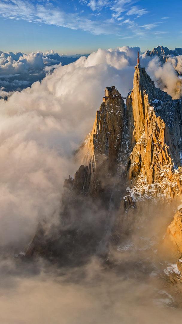 鸟瞰勃朗峰山脉中的南针峰,法国