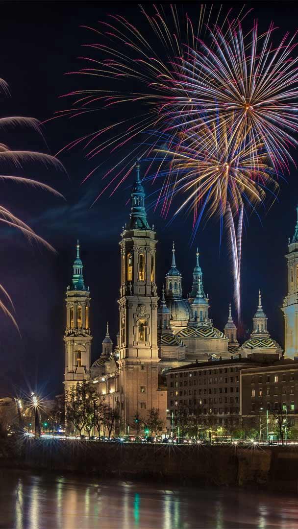 跨年庆典中燃放的烟花,西班牙萨拉戈萨