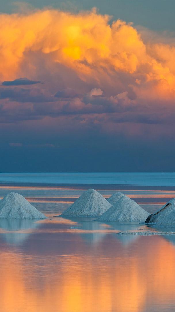 乌尤尼盐沼上的锥形盐堆,玻利维亚