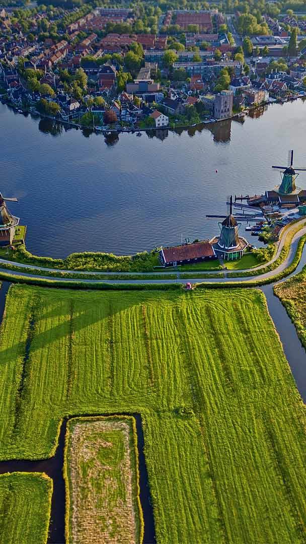 荷兰阿姆斯特丹附近赞瑟斯汉斯村里古老的风车