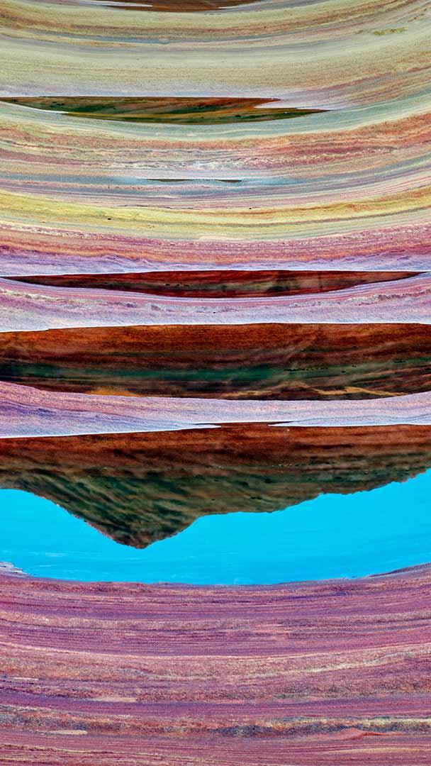 波浪谷中的砂岩层和积水,亚利桑那州朱红悬崖国家纪念碑