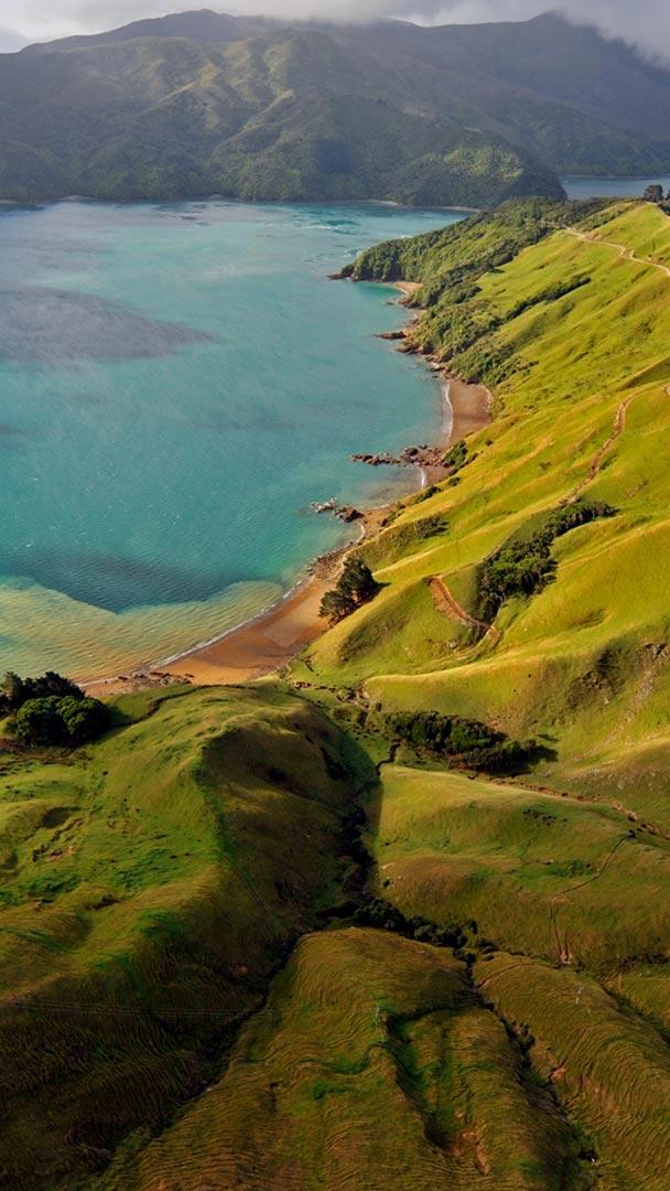 马尔堡峡湾鸟瞰图,新西兰