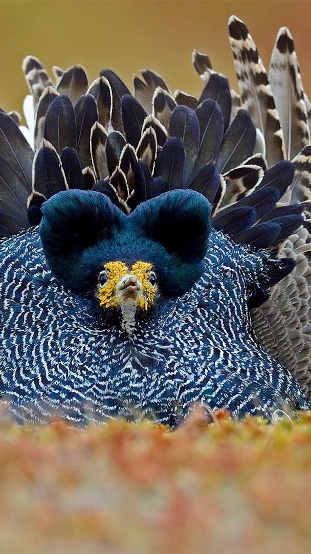 挪威瓦朗厄尔半岛上一只展示翎颌的雄性涉禽