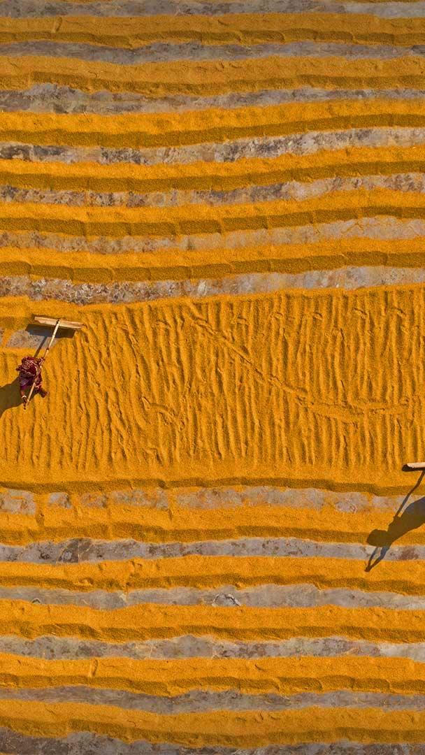 正在晾晒的大米,孟加拉国达卡