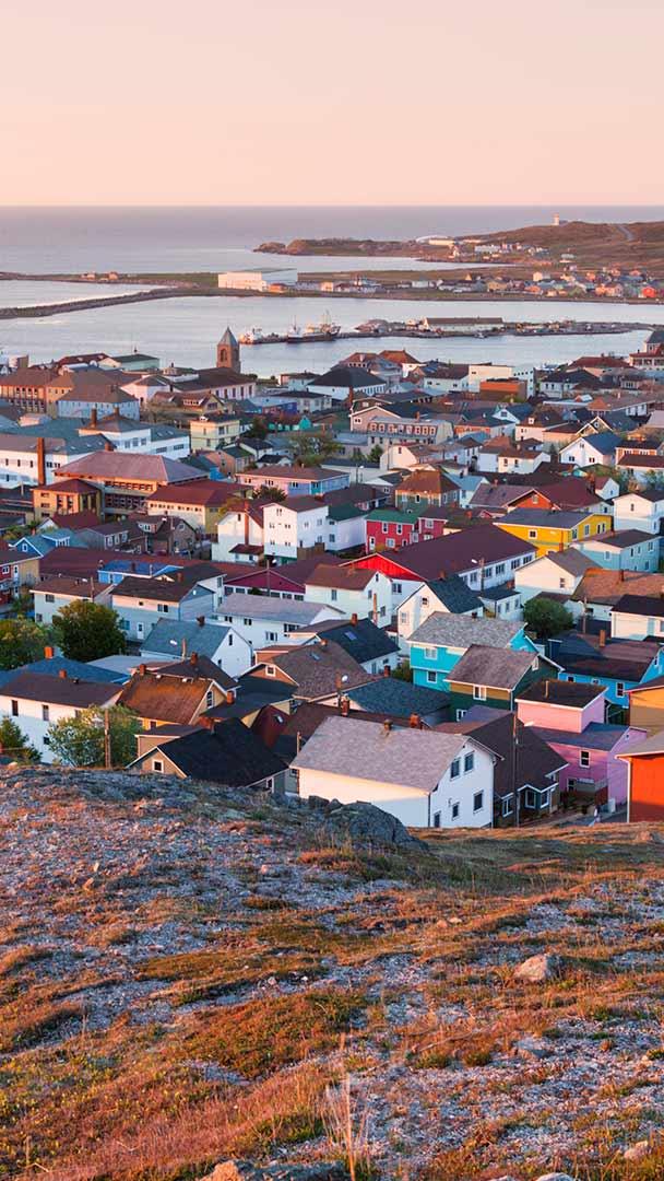 日出时分的圣皮埃尔全景,加拿大圣皮埃尔和密克隆