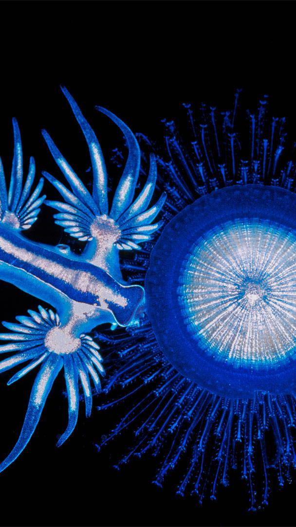 一只海蛞蝓正在进食银币水母,澳大利亚新南威尔士州