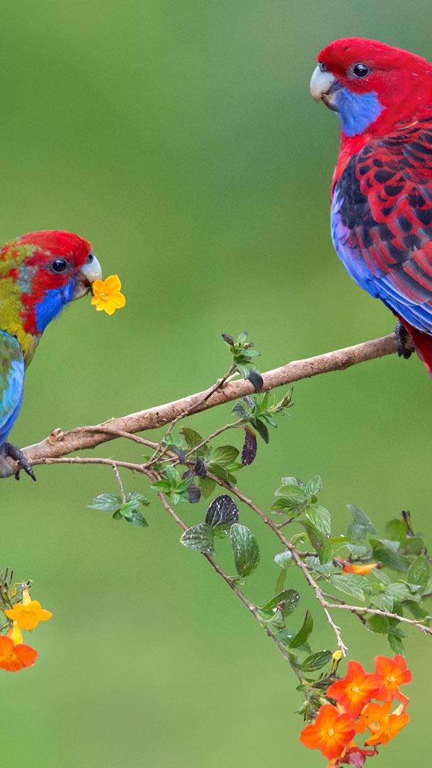 一对深红玫瑰鹦鹉幼鸟,维多利亚州