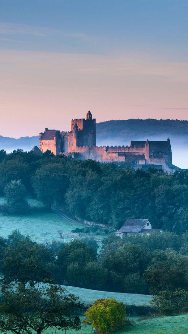 俯瞰着多尔多涅河谷的贝纳克城堡,法国