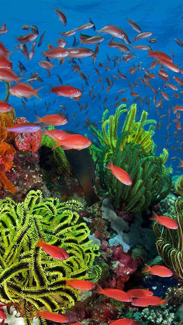 珊瑚礁周围的丝鳍拟花鮨鱼群,澳大利亚昆士兰大堡礁