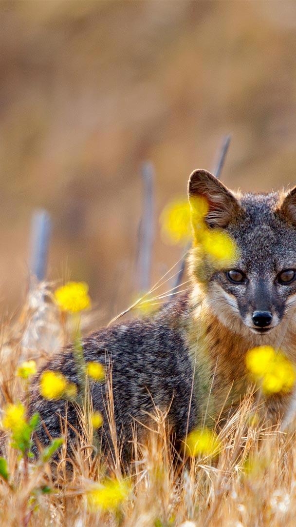 圣克鲁斯岛上的一只岛屿灰狐,加利福尼亚州海峡群岛国家公园