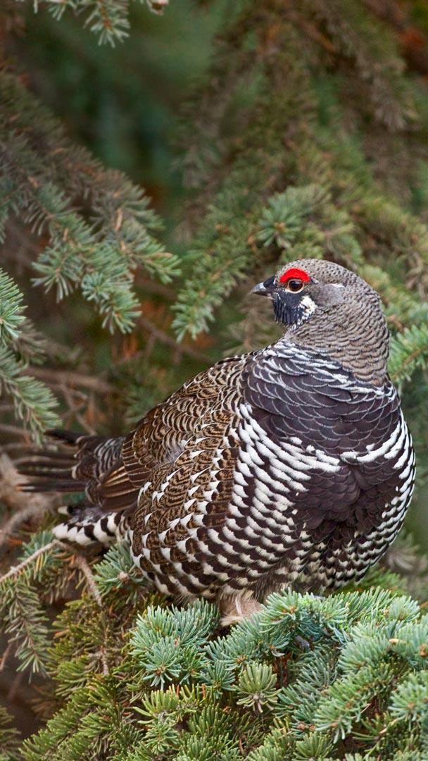 云杉树中的一只云杉松鸡,阿拉斯加德纳利国家公园