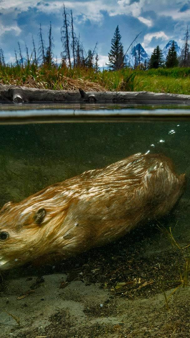 一只在大提顿国家公园里游泳的海狸