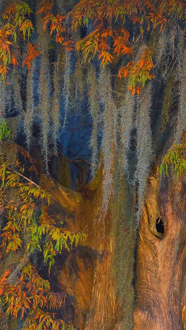 阿查法拉亚盆地的秃柏和西班牙苔藓,路易斯安那州
