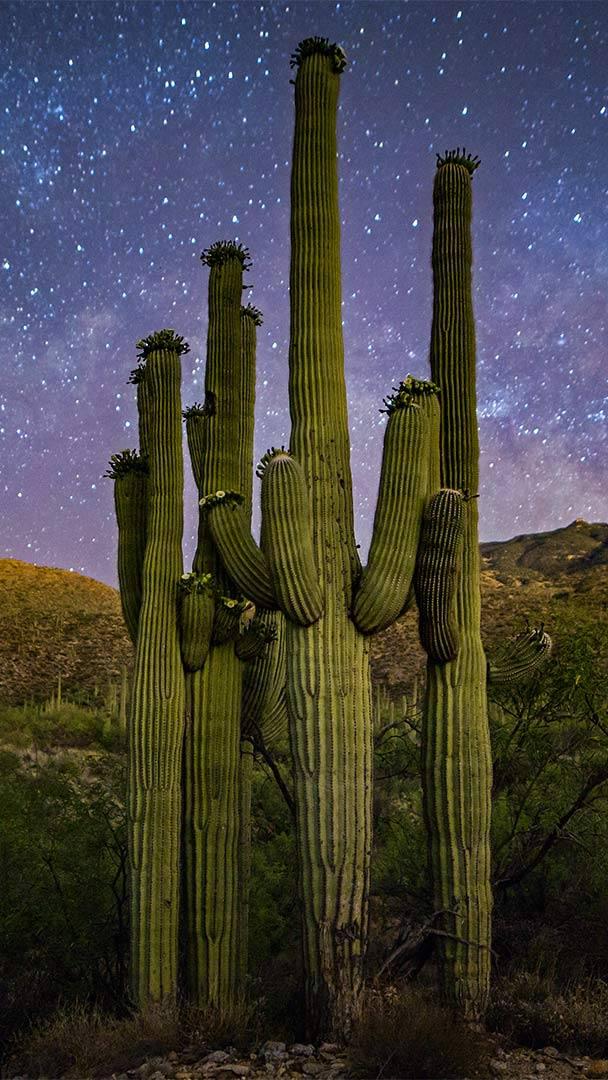 星空下的仙人掌家族,美国萨瓜罗国家公园