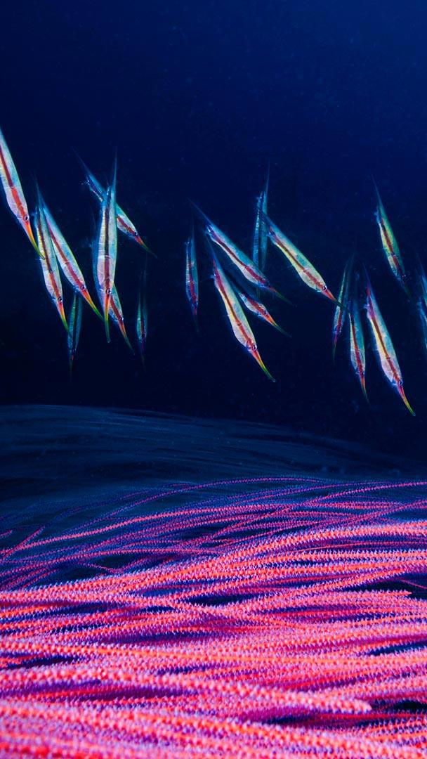 2016-09-12 神秘奥妙的海底世界中,生活着形态各异的海洋生物,在蔚蓝深邃的海底总是有我们探寻不完的秘密。你看那边,剃刀鱼正在红色的海鞭中穿梭,与海鞭进行亲密的互动。如果您想亲身领略这海底世界的无穷魅力,不如到太平洋的美丽海岛进行一次潜水吧。