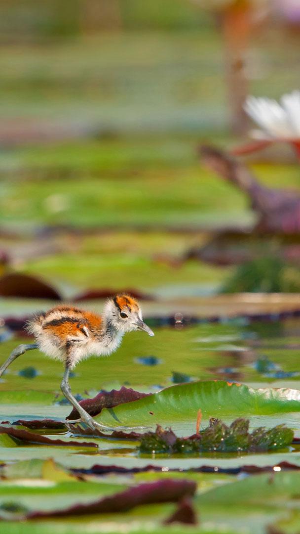 2017-06-21 也许你还在怀念春天那令人舒服的温度,但无可置疑夏天已经悄然而至,不经意间就会被太过热烈的阳光晒黑皮肤。夏日炎炎,荷花盛开,一只水雉幼崽在碧绿的荷叶上“奔走”,仿佛也在躲闪夏日阳光。当然,在躲避炎热的同时,夏天也更适合做一些疯狂的事儿呢,那么和我一起来吧!
