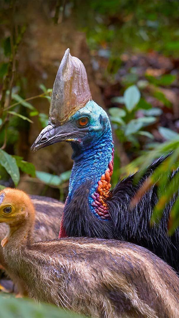 2022-06-19 父亲节快乐!为了庆祝,我们冒险进入澳大利亚昆士兰的热带雨林,拜访大自然中最具保护力的父亲之一,双垂鹤鸵,这是三种不会飞的鸟类中最大的一种。鹤鸵,就像这位溺爱的父亲和他的宝宝一样,因其锋利的匕首般的爪子和好斗的行为而赢得了“世界上最危险的鸟类”的称号。鹤鸵以攻击家畜甚至人类而臭名昭著。在野外,成年鹤鸵非常好斗,没有天敌。然而,他们的后代需要一些保护。这时爸爸介入了。<br>一旦鹤鸵妈妈下了蛋,她就会抛弃这个家庭,开始组建新的家庭。鹤鸵是独居鸟类,因此抛弃幼鸟是很自然的。但爸爸知道他的孩子需要帮助。他将在蛋上坐上51天以上,添加或移除筑巢材料,以使他们的家保持在完美的温度。在这段时间里,为了保证蛋的安全,他经常不吃饭。雏鸟孵化后可以在巢中待九个月。爸爸一直陪在他们身边,经常带他们出去觅食,教它们生存。<br>蛇、蜥蜴和老鹰试图捕捉鹤鸵幼鸟时,经常会遭到鹤鸵爸爸用爪子进行的极具攻击性的踢打,这些爪子可以将潜在攻击者的内脏取出。一旦他的孩子长大成人,鹤鸵爸爸就会把他们赶走,并准备带着另一窝孩子再次这样做。虽然没有关于他的孩子们回来送“世界上最棒的爸爸”的杯子或烟灰缸的报道,但雄性鹤鸵对做父亲的奉献赢得了我们的钦佩。