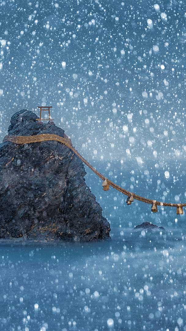 海岸旁的二见浦夫妇岩,日本三重县
