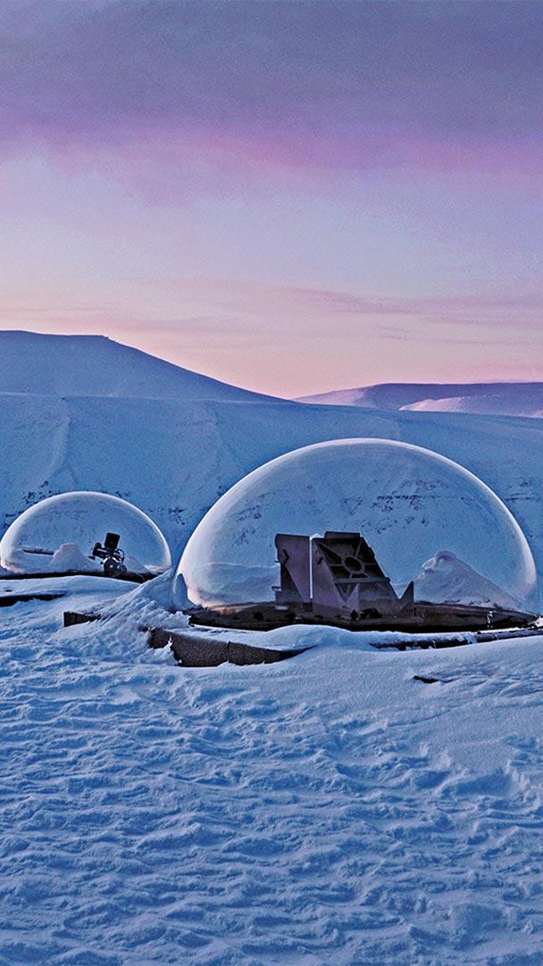 半球形的谢尔亨里克森天文台,挪威斯瓦尔巴群岛