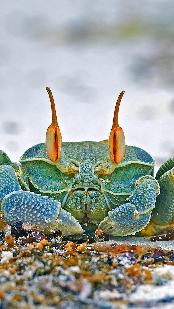 安斯海滩上的角眼沙蟹,塞舌尔普拉兰岛