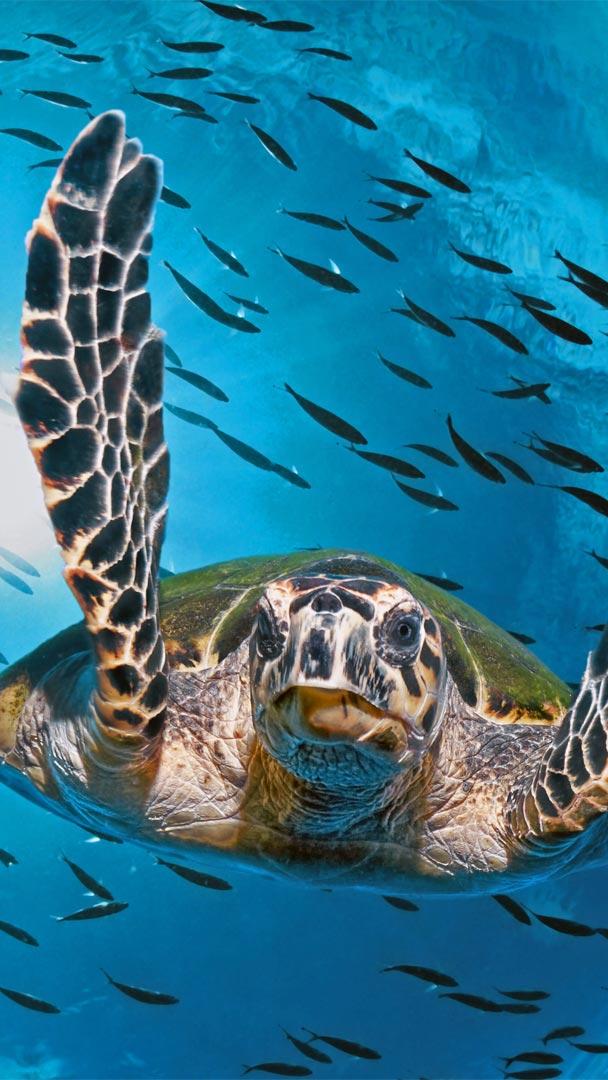 正在潜水的绿蠵龟,澳大利亚大堡礁