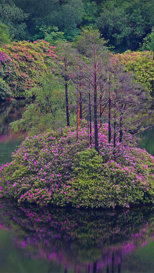 格伦·埃蒂夫盛开着石南花的小湖,苏格兰