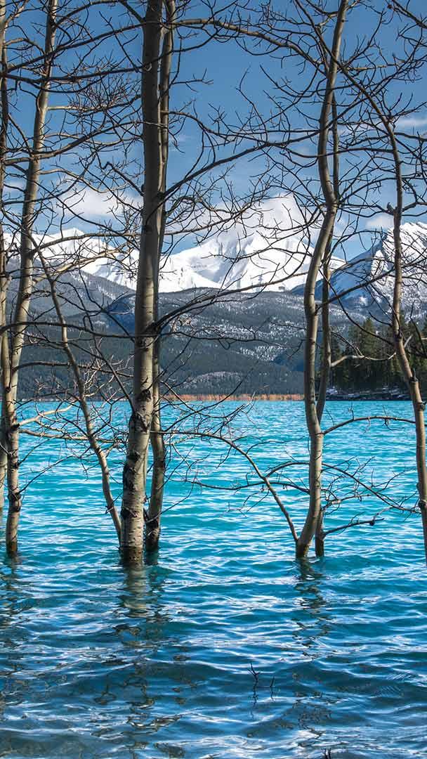 亚伯拉罕湖中的树,加拿大艾伯塔