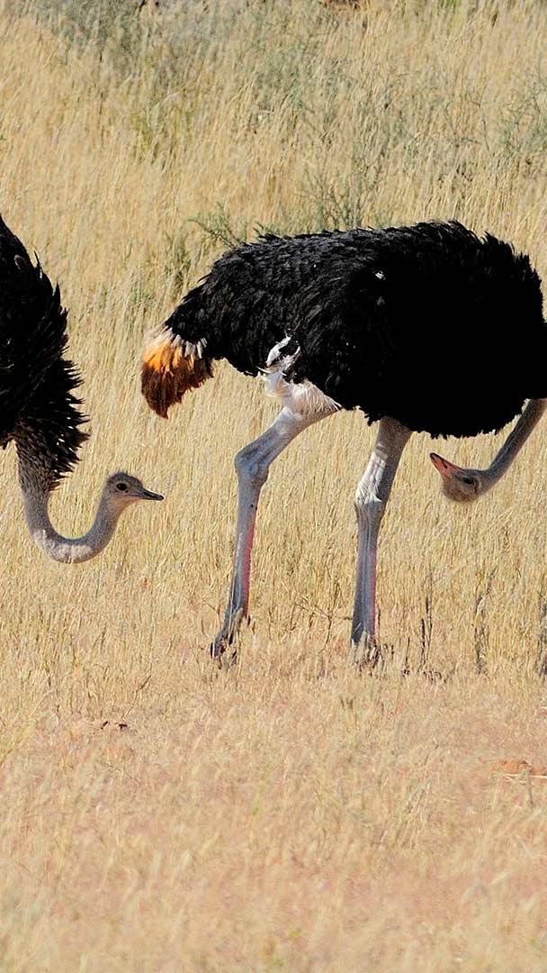 卡格拉格帝边境公园中一对正在求偶的鸵鸟,南非