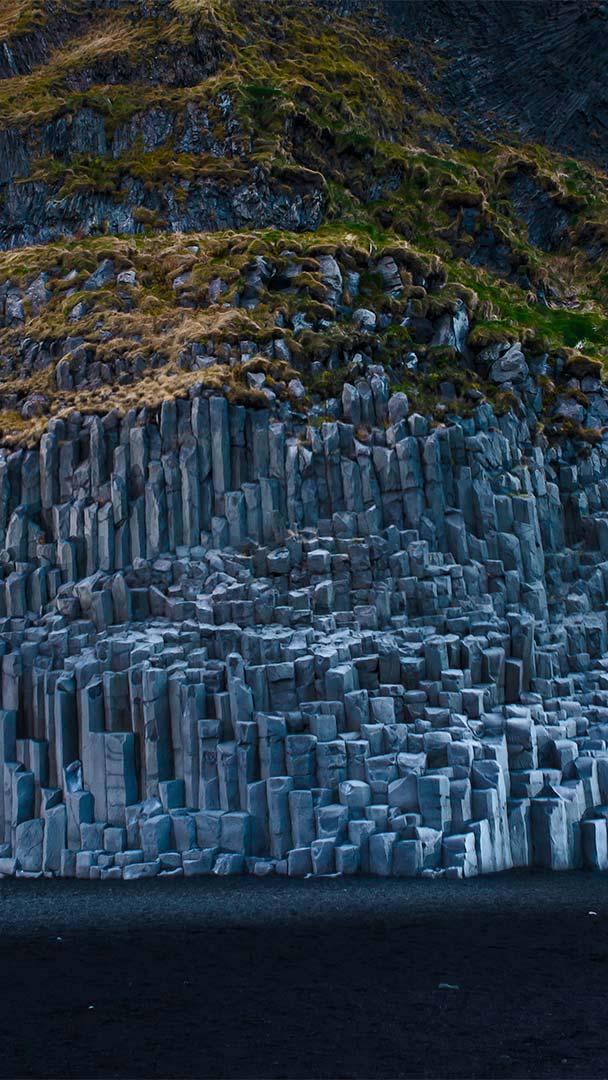 黑沙滩上Reynisdrangar的玄武岩,冰岛