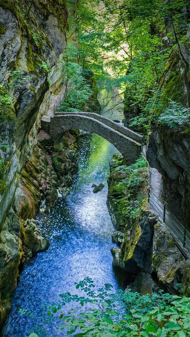 Areuse峡谷的Saut du Brot石桥,瑞士纳沙泰尔