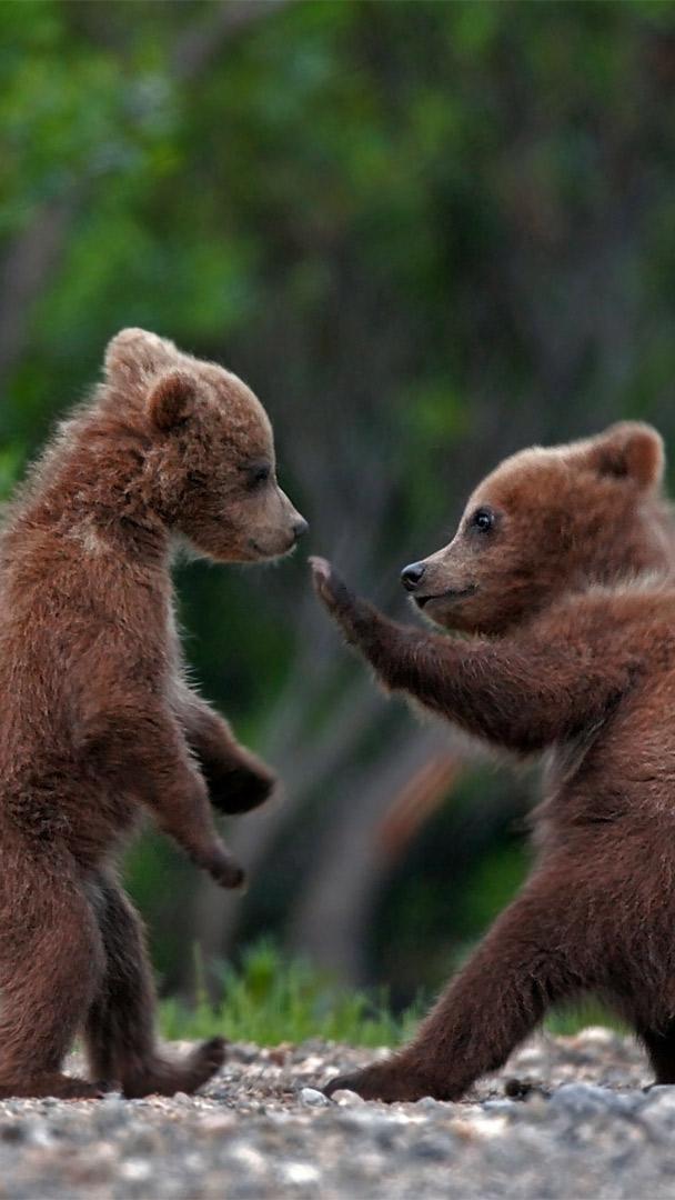 在迪纳利国家公园中玩耍的灰熊幼崽,阿拉斯加