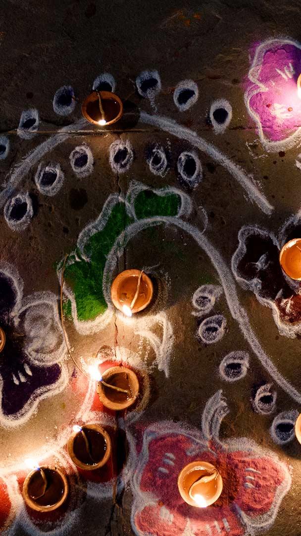 被北极光映衬出轮廓的因努伊特石堆,加拿大西北地区