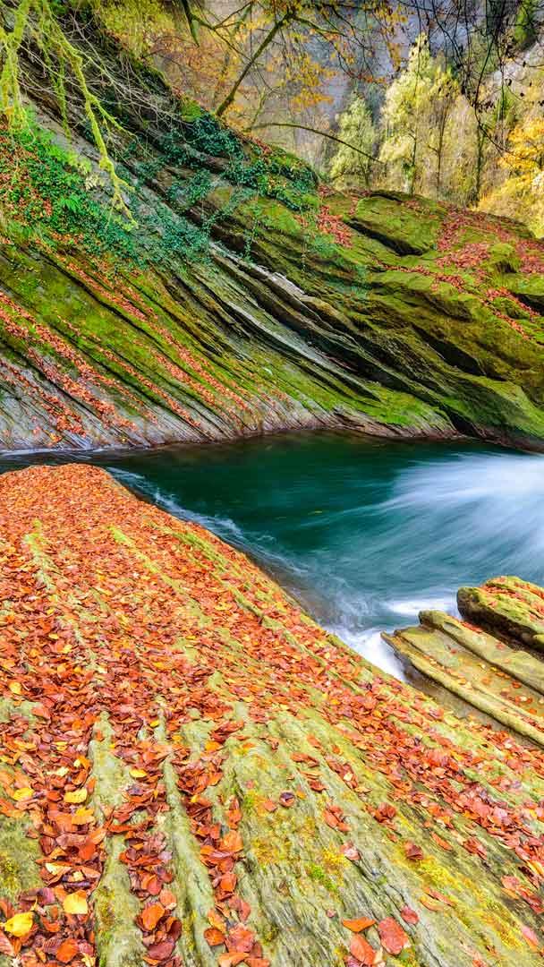 阿尔卑斯山Cheran峡谷中流淌的河流,法国萨瓦