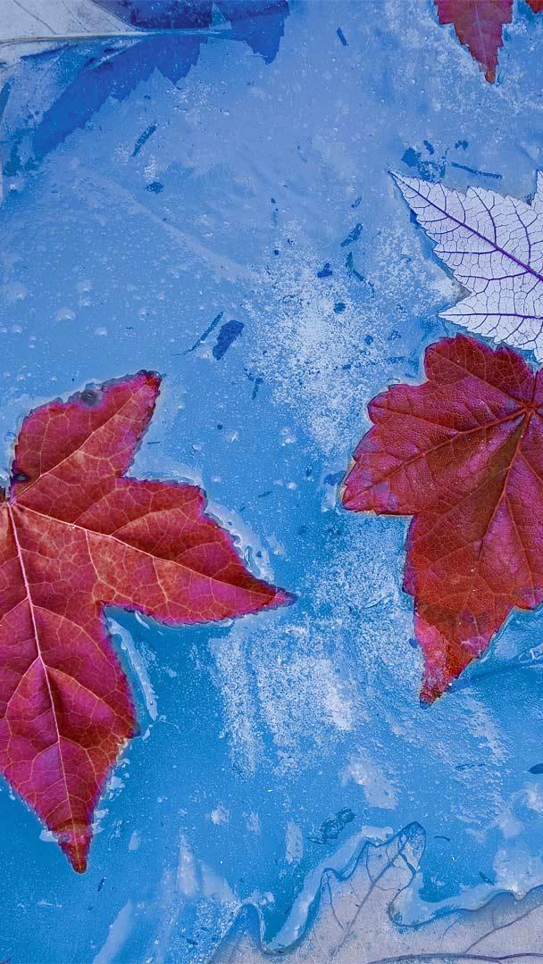 普莱斯湖中冰封的秋叶,北卡罗莱纳州朱利安·普莱斯纪念公园